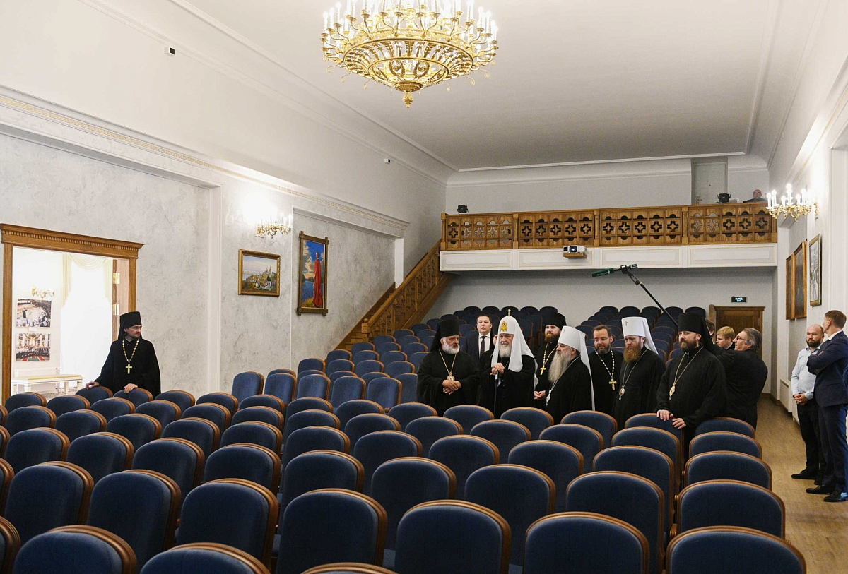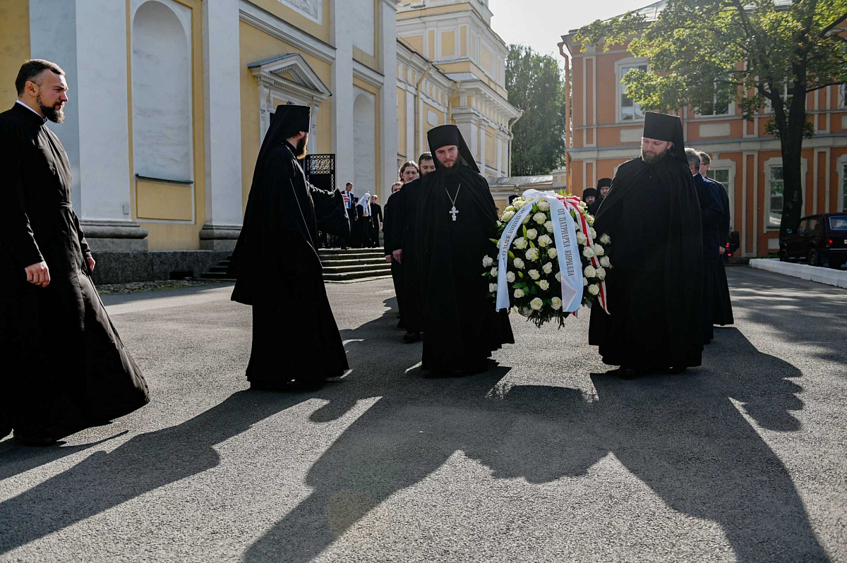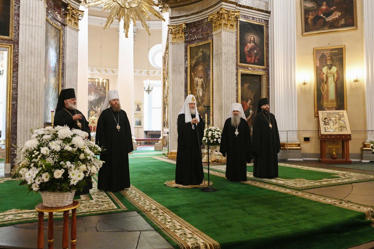 Святейшего Владыку сопровождали митрополит Санкт-Петербургский и Ладожский Варсонофий, управляющий делами Московской Патриархии митрополит Тверской и Кашинский Савва, руководитель Административного секретариата епископ Павлово-Посадский Фома.