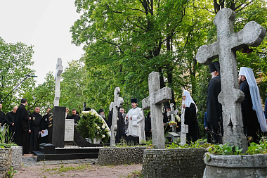 Святейший Владыка также помолился у могил митрополита Антония (Мельникова) и митрополита Иоанна (Снычева).