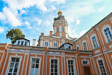 В завершение Предстоятель Русской Церкви посетил Духовно-просветительский центр «Святодуховский» (бывшая церковь-усыпальница преподобного Исидора Пелусиота, разоренная в советское время). Святейший Владыка осмотрел интерьеры возрожденного здания, в том числе часть дореволюционной мозаики.