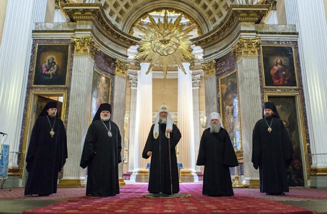 Его Святейшество сопровождали: управляющий делами Московской Патриархии митрополит Санкт-Петербургский и Ладожский Варсонофий; руководитель административного секретариата Московской Патриархии епископ Солнечногорский Сергий; викарии Санкт-Петербургской митрополии: наместник Александро-Невской лавры епископ Кронштадтский Назарий; епископ Царскосельский Маркелл; епископ Гатчинский и Лужский Митрофан.