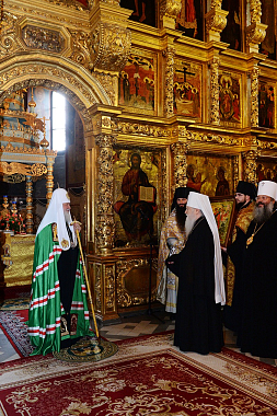 После сугубой ектении Предстоятель Русской Православной Церкви вознес молитву о мире на Украине.