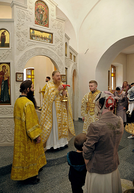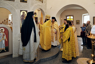 Сослужил отцу наместнику священник Платон Шурыгин, клирик храма Покрова Богородицы в Южно-Приморском парке Санкт-Петербурга.