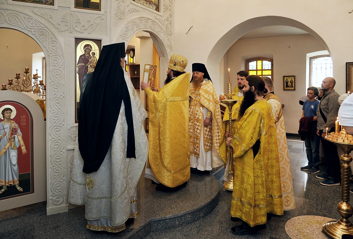 16 сентября 2018 года, в неделю 16-ю по Пятидесятнице, благочинный монастырей Симферопольской и Крымской епархии и наместник Свято-Климентовского Инкерманского пещерного мужского монастыря архимандрит Каллиник (Чернышев) совершил воскресную Божественную литургию в Свято-Троицком храме обители.