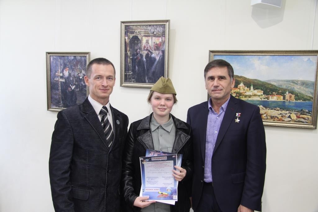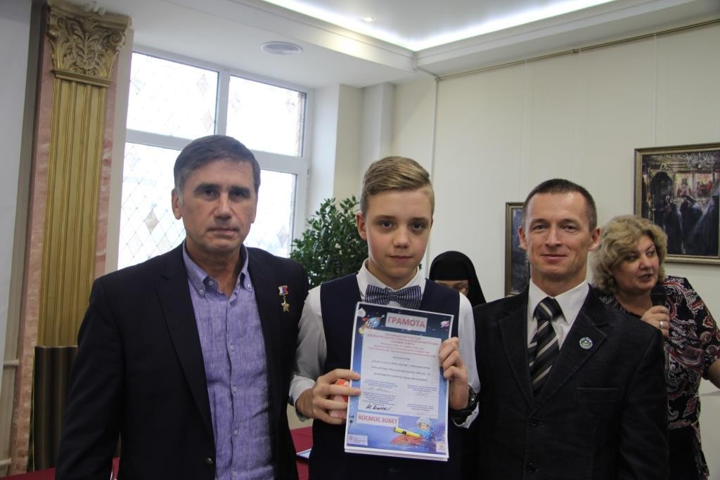 После концерта началось награждение победителей и призеров конкурса рисунков, поделок и моделей «Космос зовет». Все участники конкурса и конференции получили сертификаты участника от Отдела образования Малоярославецкого района, свидетельства со стороны ФГБУ «НИИ ЦПК имени Ю.А. Гагарина» с автографами космонавтов.