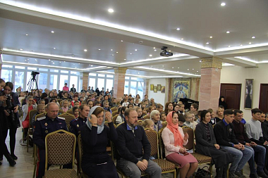 Среди слушателей конференции присутствовали школьники Малоярославецкого района, воспитанницы детского православного пансиона «Отрада», участники военно-патриотической группы при историческом клубе интеллектуальных и творческих игр при интерактивном музее «Два победоносных сражения под Малоярославцем в Отечественных войнах» (отряд казаков и отряд сестер милосердия), а также учащиеся общегородской воскресной школы Духовно-просветительского центра «София» при Свято-Никольском Черноостровском женском монастыре.
