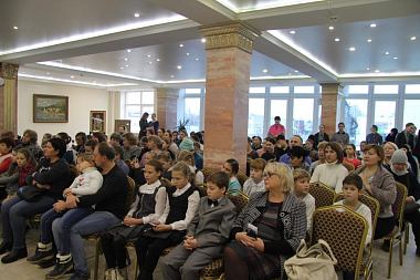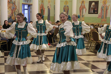 По завершении церемонии награждения настоятельница Свято-Никольского Черноостровского женского монастыря игумения Николая пригласила всех перейти в большую трапезную обители на праздничный обед и концерт-подарок от воспитанниц детского православного пансиона «Отрада».