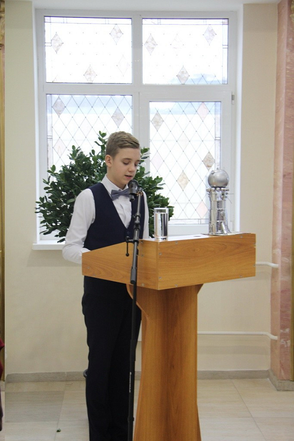 Следующее сообщение зачитал ученик 5 класса МБОУ СОШ № 1 г. Малоярославца Артем Носов (руководитель – Л.В. Гунченко), представлявший доклад и модель космического корабля К.Э. Циолковского в прошлом году. На этот раз Артем рассказал о космическом корабле «Восток-1» и его изготовлении и продемонстрировал его модель.