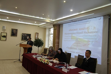 После школьных выступлений участники заслушали доклады космонавтов. Юрий Иванович Маленченко в докладе «Профессии, связанные с космосом на земле и в небе» говорил о работе Центра подготовке космонавтов, профессиях людей, в нем занятых, о повседневном героизме на орбите и на земле, благодаря которому реализуются программы освоения и изучения космоса.