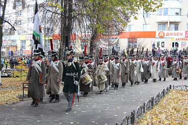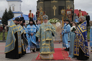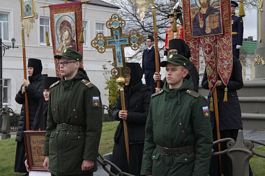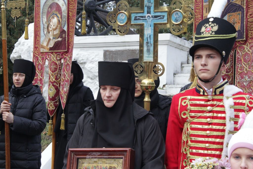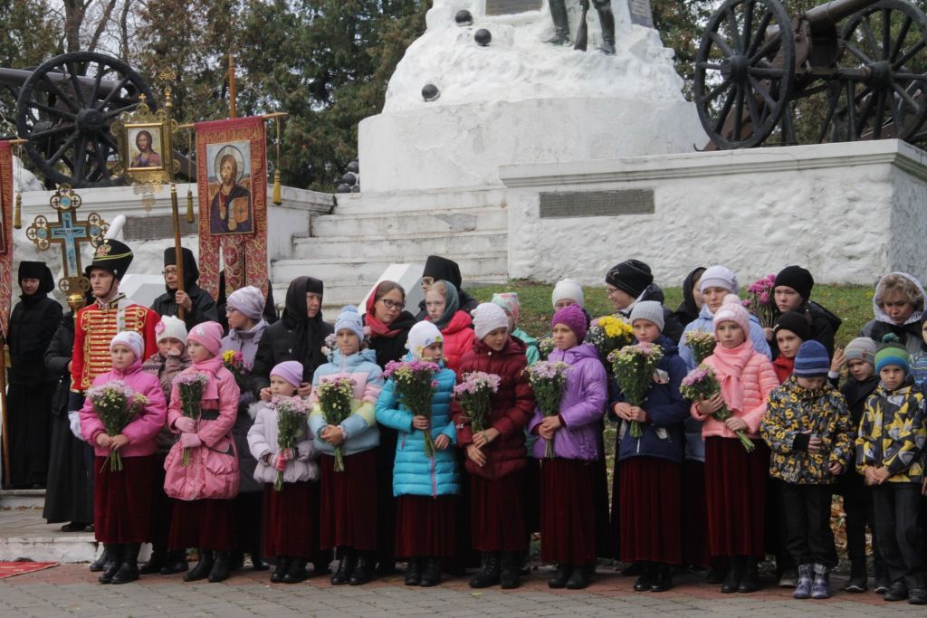 После отдания почестей в сквере 1812 года крестный ход двинулся к монументу славы героям Отечественной войны 1812 года и памятнику полковому священнику Василию Васильковскому, куда также были возложены цветы.