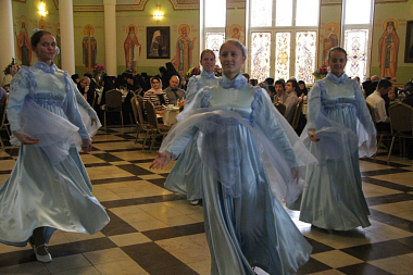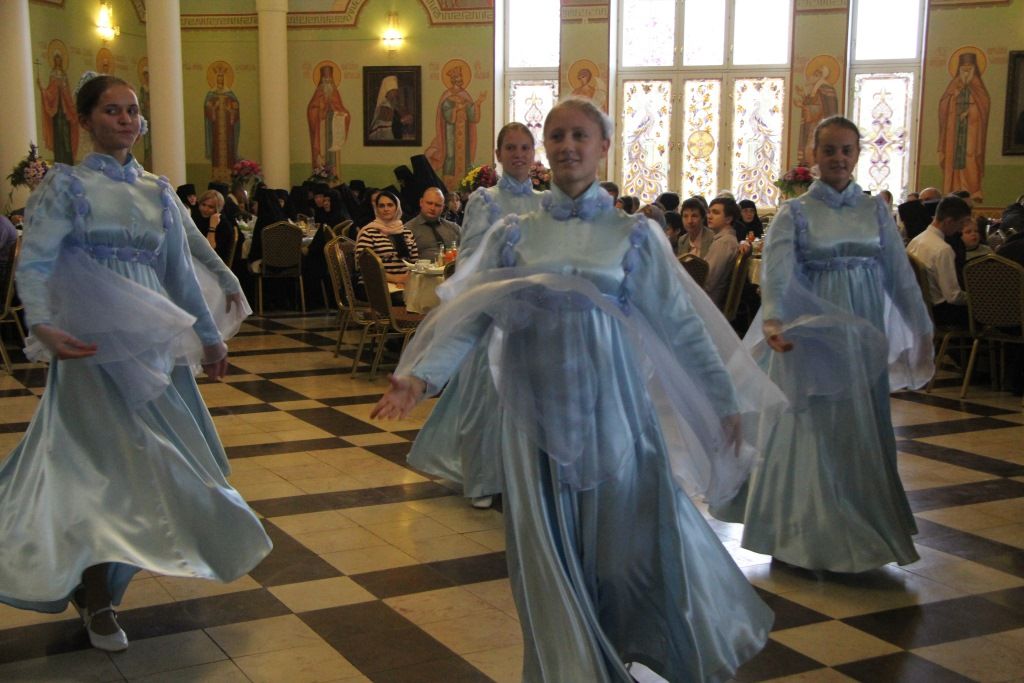 После эпизода боя участники постановки и крестного хода были приглашены в большую трапезную обители на праздничный обед и концерт музыкального коллектива «Отрада».