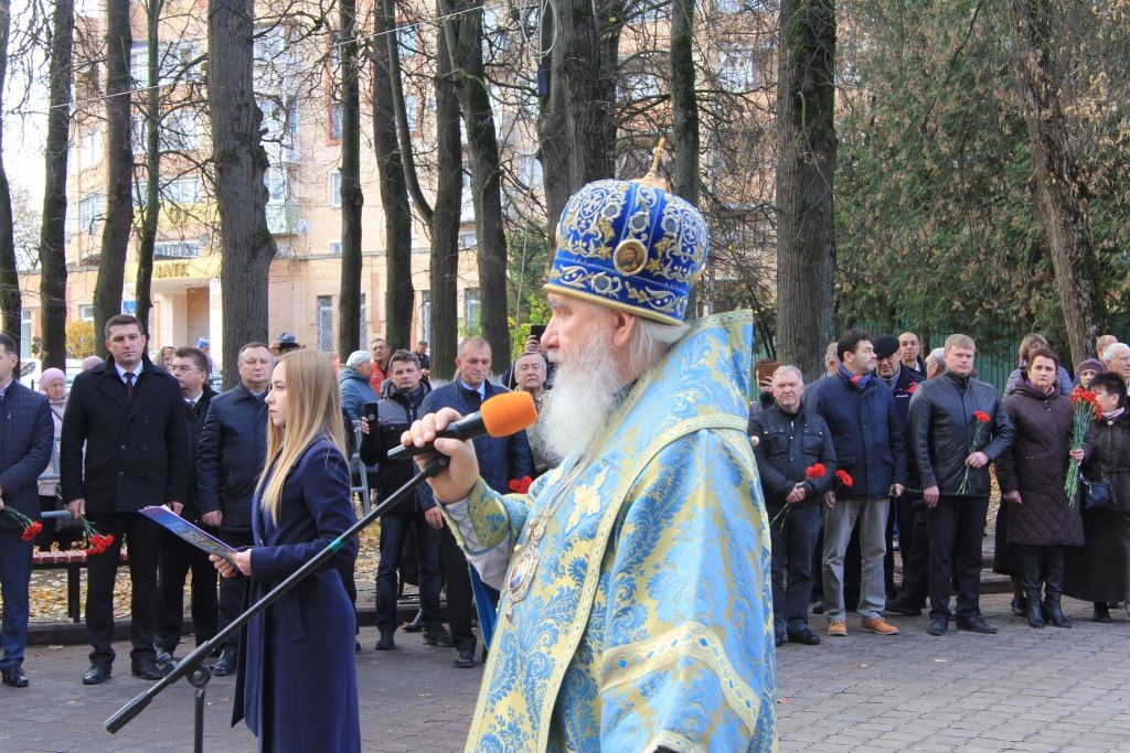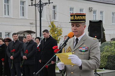 Затем к собравшимися в сквере обратились официальные лица: митрополит Калужский и Боровский Климент, первый заместитель председателя Законодательного Собрания области А.В. Ефремов, временно исполняющий обязанности главы Малоярославецкого района В.В. Парфенов, глава муниципального района «Малоярославецкий район» И.В. Тарченко, глава города Малоярославца Р.С. Саидов, военный атташе Франции в Российской Федерации бригадный генерал Иван Мартин и другие.
