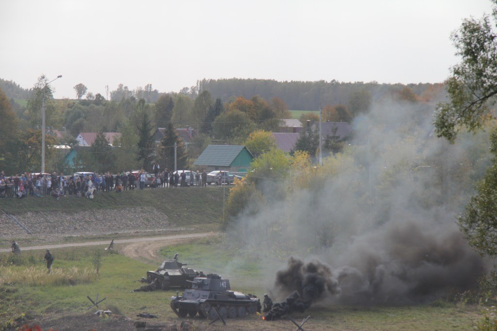 В реконструкции боев на Ильинских рубежах были задействованы два самолета, мотоциклы, артиллерия, минометы и танки с пиротехникой, чтобы зрители смогли хотя бы в какой-то степени ощутить себя на месте подольских курсантов, «понюхав пороху» в «боевой обстановке».