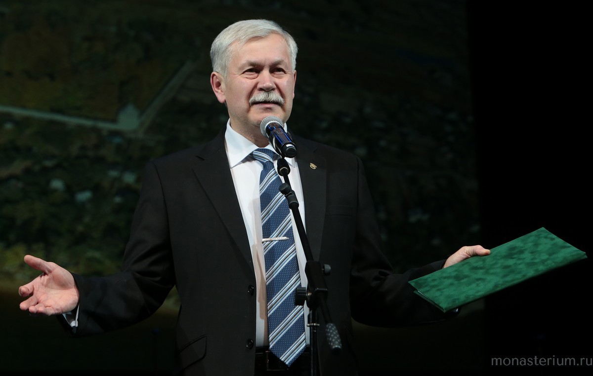 Председатель Правительства вручил благодарности губернатора Ярославской области и Микультуры России людям, которые внесли свой вклад в возрождение обители, и зачитал со сцены поздравительный адрес министра культуры Российской Федерации Владимира Мединского.