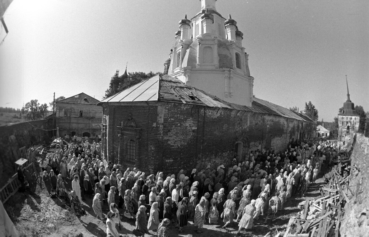 Фотовыставка «От разрухи – к возрождению» состоит из фотографий обители 1987 года в момент передачи, снимков восстановительных и реставрационных работ, а также современных, запечатлевших значимые события монастырской жизни.