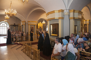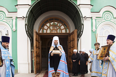В завершение своего слова митрополит Феодосий выразил благодарность за совместные молитвы и понесенные труды игумении Варваре, которая по сложившейся традиции более десяти лет ежегодно доставляет на Тамбовскую землю святыни Толгской Свято-Введенской обители.