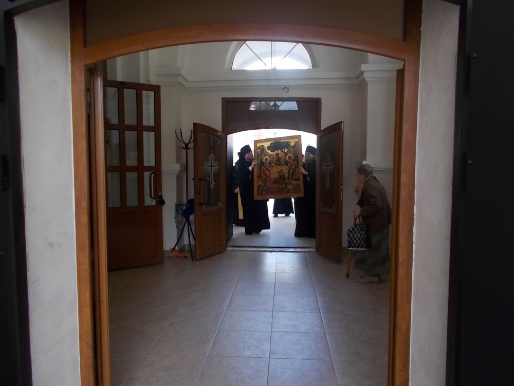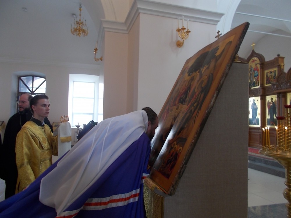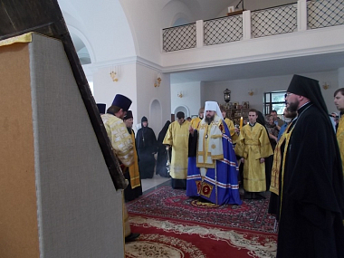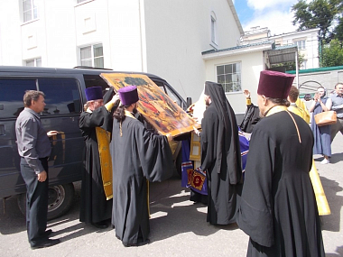 Чудотворная икона (XVII в.) была принесена в дар монастырю благочестивой семьей из г. Москвы. Высокопреосвященнейший Серафим поблагодарил благотворителей за неоценимый дар Церкви, на что в ответ семья выразила свою радость по поводу возвращения этой великой святыни в храм Божий и пожелала процветания обители.