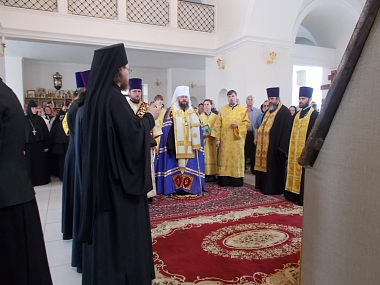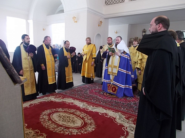 Его Высокопреосвященству сослужили клирики обители: протоиереи Владимир Спицын, Павел Матюшечкин, Владимир Ольхов; игумен Сергий (Зайчиков), иерей Сергий Червяков, иеромонах Фаддей (Голосных), протодиакон Дионисий Сушко, диаконы Ростислав Горшенев и Сергий Хомяков.