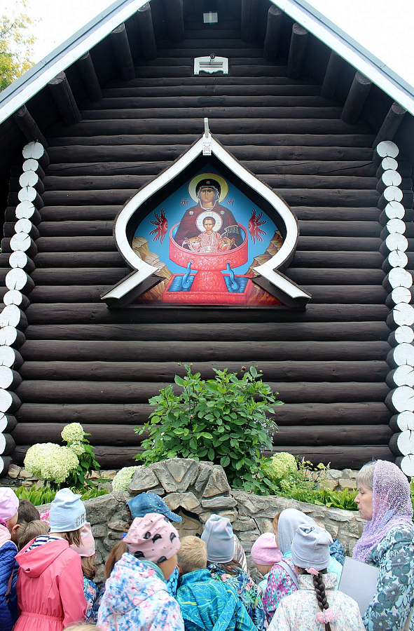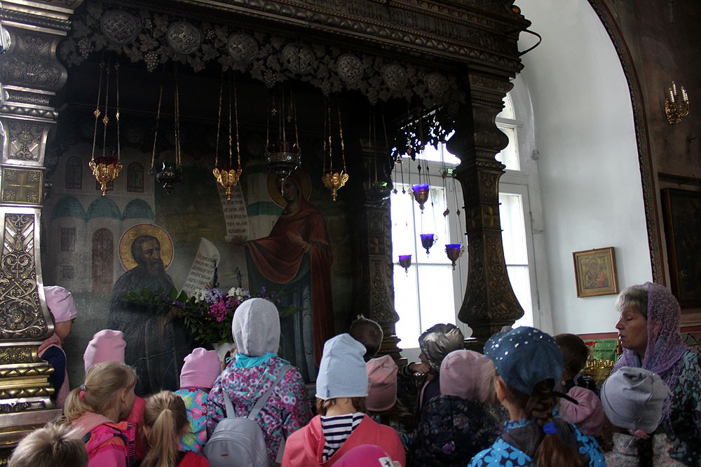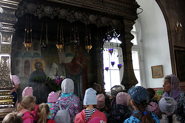 Опытный экскурсовод Светлана Вотинцева в познавательной форме рассказала детям об истории обители, Великорецкого крестного хода и обретения Великорецкой иконы святителя Николая.