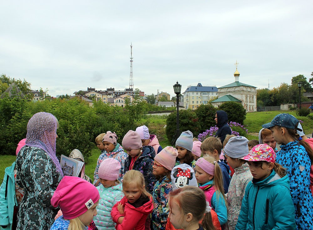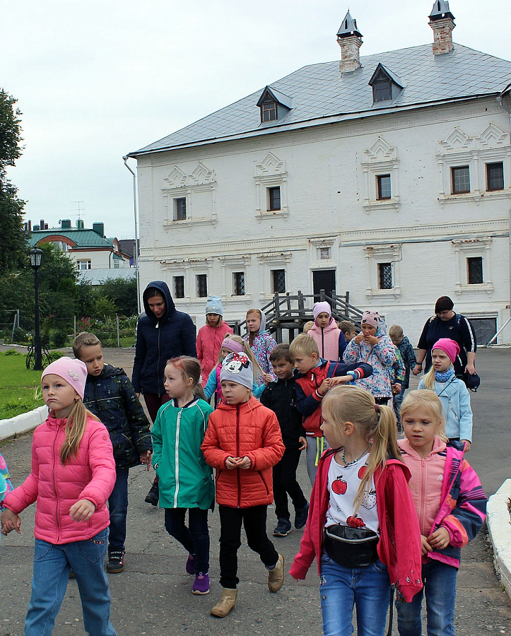 Обзорная экскурсия включала посещение Успенского и Никольского храмов. В ходе экскурсии юные паломники помолились у раки с мощами преподобного Трифона и Великорецкой иконы святителя Николая, увидели архитектурный ансамбль монастыря, храмовую роспись и чтимые иконы обители, узнали о совершаемом в этот день Церковью празднике Изнесения Честных Древ Животворящего Креста Господня. Особенно детям понравилось посещение источника и купели.