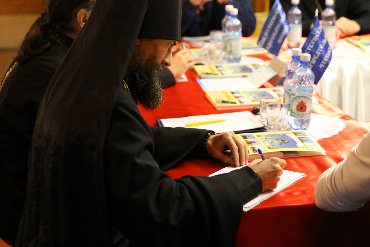В рамках работы круглого стола прозвучали доклады, посвященные жизнеописаниям исповедников и новомучеников Церкви Русской XX века. Директор Омского музея просвещения И.Е. Скандаков представил участникам обретения мощей священномученика Сильвестра (Ольшевского).