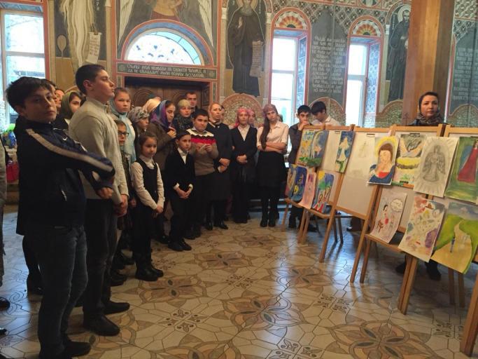 Детские чувства и мысли, выраженные в красках, подарили радость всем собравшимся. Образ Ангела Божиего, Хранителя и наставника, соседствовал с рисунками, на которых в образе ангела была мама, самый родной и жертвенный человек, который молится за нас и хранит от зла подобно настоящему ангелу.