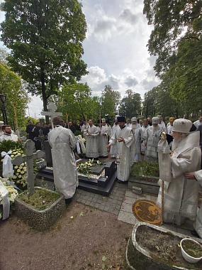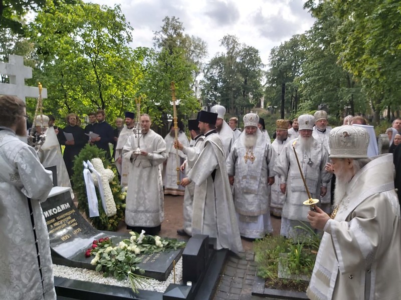 Затем Патриарший наместник Московской епархии возглавил панихиду о упокоении митрополита Никодима и заупокойную литию у его могилы на Никольском кладбище Лавры. Духовенство и миряне возложили цветы и венки к могиле архипастыря.