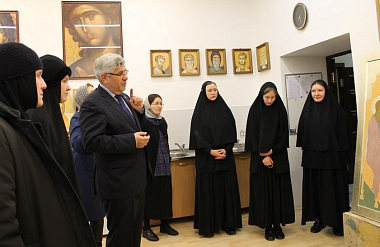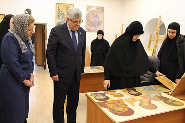 После лекции Олег Германович посетил иконописную мастерскую монастыря.
