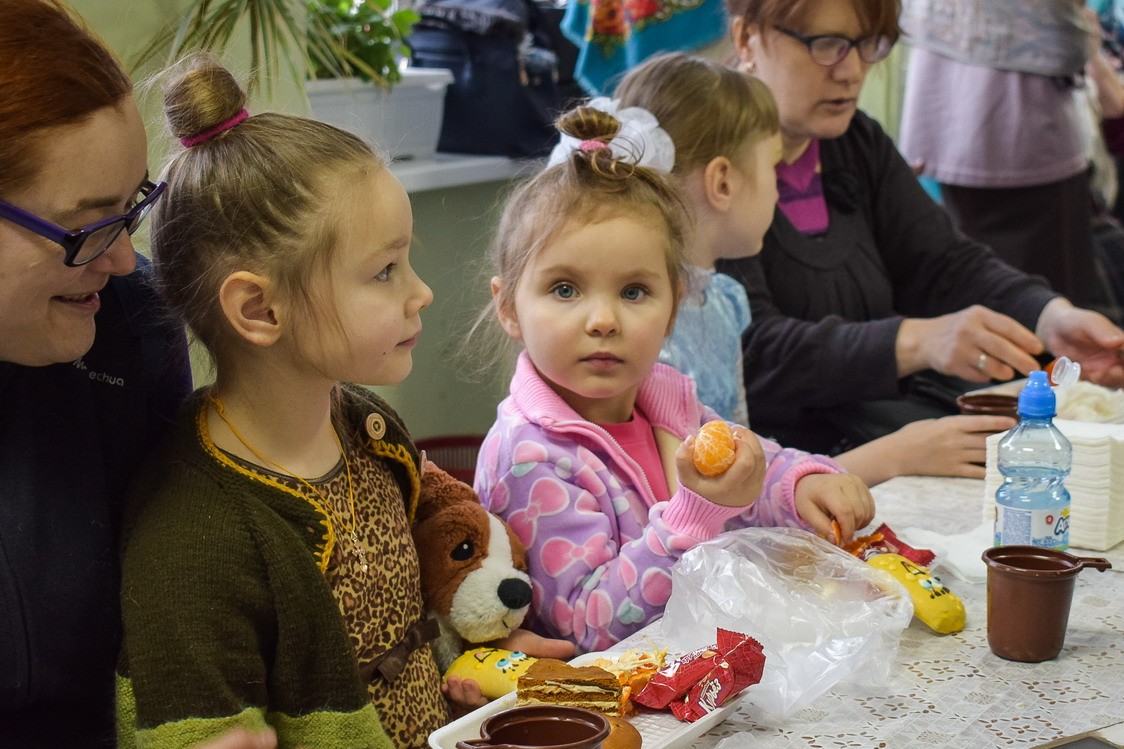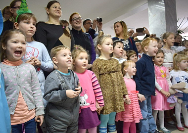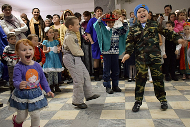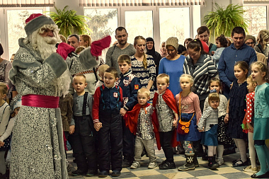 После спектакля вместе с родителями у праздничной елки собралось несколько сотен детей от 4 до 15 лет, с которыми играли Дед Мороз и Снегурочка. Традиционный хоровод вокруг елки в этот раз стал игрой в паровозик, который останавливался на разных станциях, танцевальной и других, а последней была станция «Подарки».