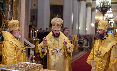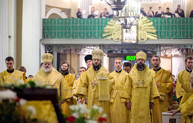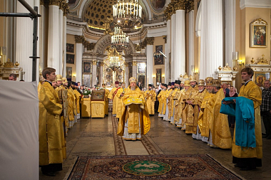 Его Высокопреосвященству сослужили: наместник Лавры епископ Кронштадтский Назарий; епископ Тихвинский и Лодейнопольский Мстислав; секретарь епархиального управления протоиерей Сергий Куксевич; благочинные и настоятели петербургских храмов, священники Санкт-Петербургской епархии.