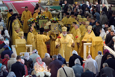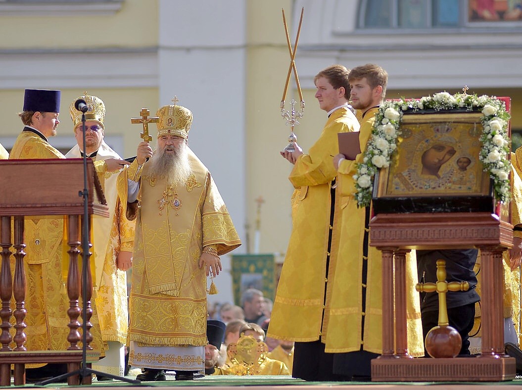 По окончании Божественной литургии в Казанском кафедральном соборе архиереи и сослужившее им духовенство возглавили молитвенное шествие по Невскому проспекту к площади Александра Невского.
