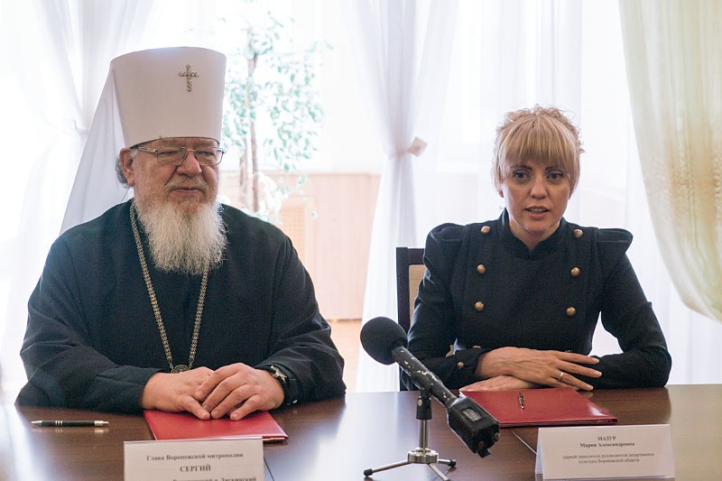 В подписании документа приняли участие митрополит Воронежский и Лискинский Сергий и первый заместитель руководителя Департамента культуры Воронежской области М.А. Мазур.