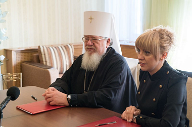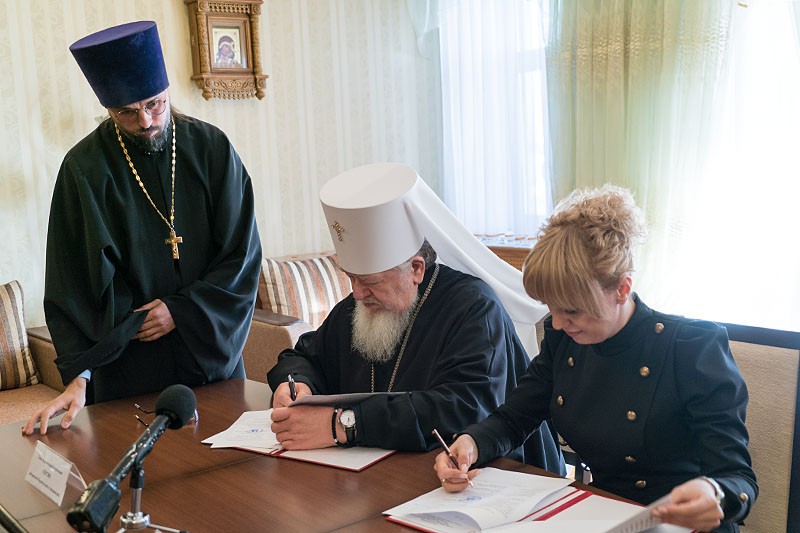 После приветственных слов Высокопреосвященнейший митрополит Сергий и Мария Александровна Мазур поставили на экземплярах соглашения свои подписи.