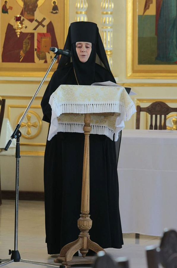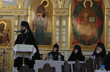 С докладами выступили: благочинный монастырского округа, наместник Свято-Успенского Дивногорского монастыря игумен Алексий (Сукачев), настоятельница Алексеево-Акатова женского монастыря игумения Варвара (Сажнева), игумен Воскресенского Белогорского мужского монастыря Илия (Ждамиров), настоятель Серафимо-Саровского мужского монастыря иеромонах Дионисий (Шумилин), настоятельница Преображенского Толшевского монастыря монахиня Тихона (Нефедченко).