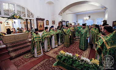 Архиереям сослужили наместник монастыря архимандрит Митрофан (Письменский), насельники обители игумен Арсений (Гавура), иеромонах Алексий (Федорчук), иеромонах Владимир (Конивченко), настоятель храма Св. вмч. Георгия Победоносца пос. Подберезье протоиерей Роман Литвинюк, настоятель храма Благовещения Пресвятой Богородицы пос. Шимска протоиерей Павел Клиновой, настоятель храма Тихвинской иконы Божией Матери пос. Холм протоиерей Василий Середа, настоятель храма Вмц. Анастасии Узорешительницы с. Бакачино иерей Генадий Корнев, настоятель храма Покрова Божией Матери с. Борисово иерей Николай Епишев, настоятель храма Вознесения Господня иерей Сергий Федоров, настоятель храма Св. вмч. Георгия Победоносца д. Великое Село иерей Владимир Пилипчук.