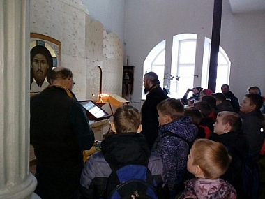 «Мы организовали для учеников познавательно-паломническую поездку в северную обитель, чтобы на месте показать детям устройство православного храма, рассказать об иконах и о возникновении монашества», – рассказал отец Петр.