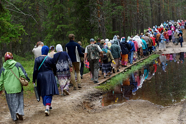 «Братия и гости прошли с крестом, хоругвями, иконами и непрестанным пением три километра сначала сосновым бором, а потом цветущим лугом, – рассказала пресс-секретарь Пинежского благочиния Людмила Соснина. – Малыши, конечно, уставали, немощные опирались на палочку, но церкви достигли все».