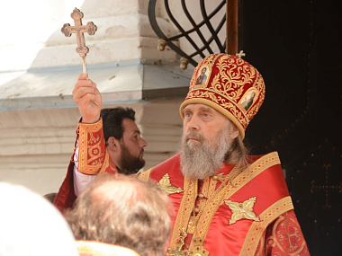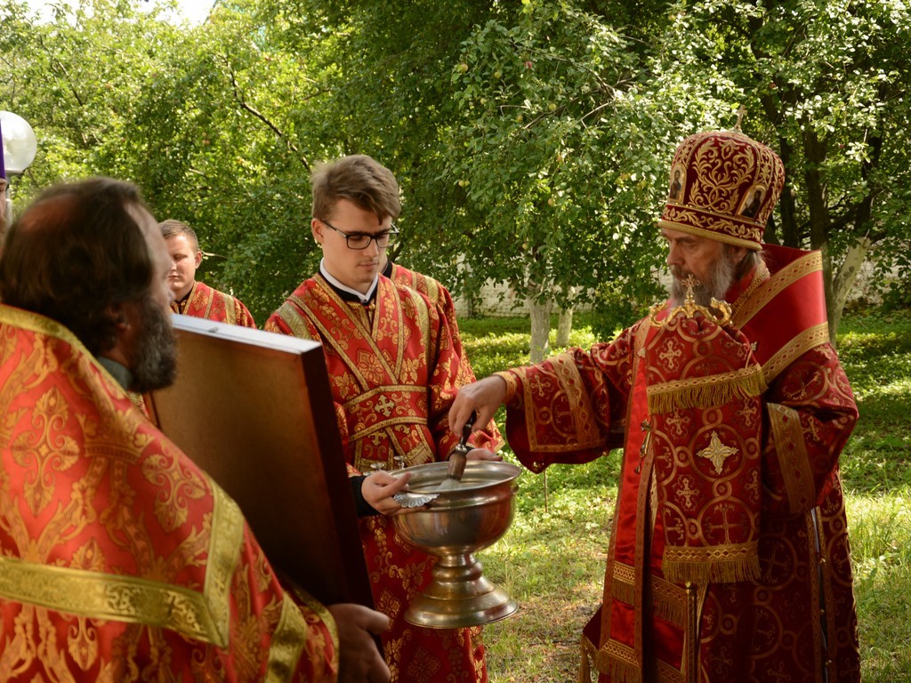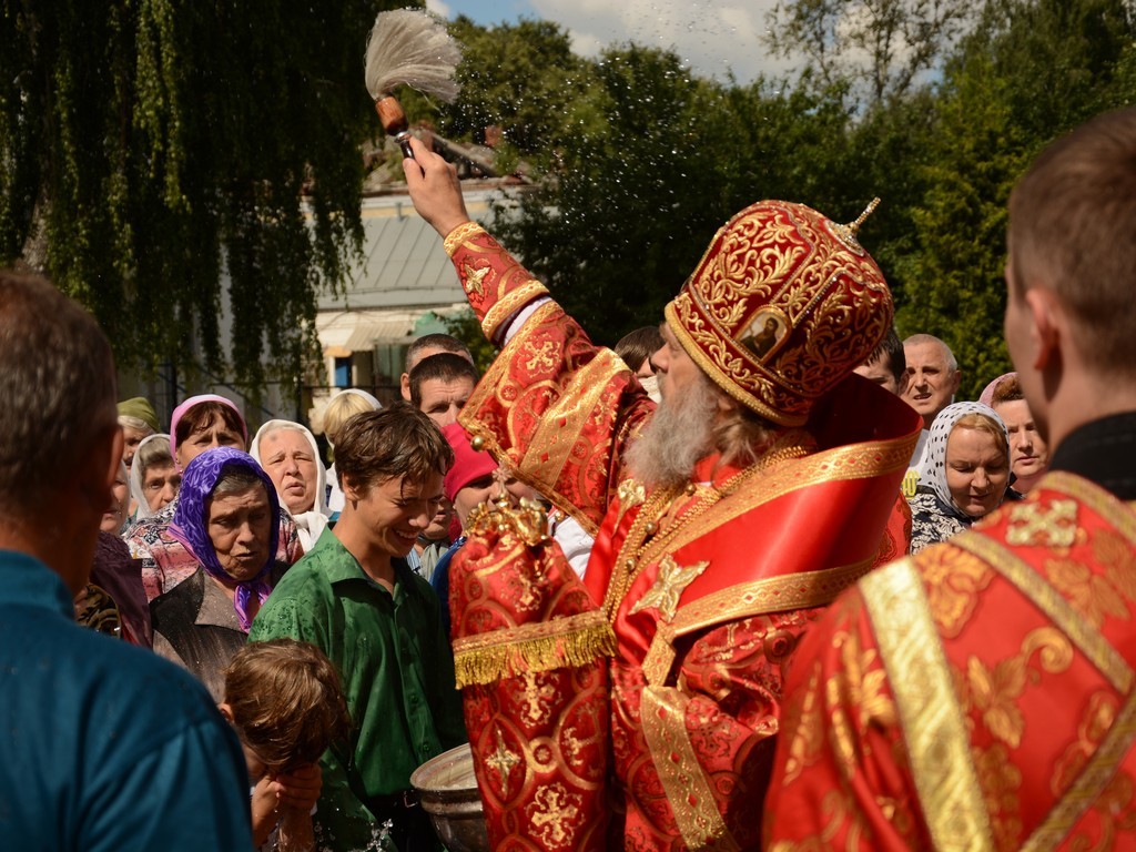 По окончании Литургии Его Высокопреосвященство возглавил торжественный молебен святому мученику и целителю Пантелеимону у ковчега с частицей мощей святого и крестный ход, во время которого обильно окропил многочисленных прихожан, паломников и гостей обители святой водой.