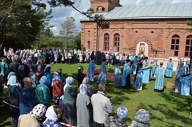 За богослужением молились настоятельница Богородице-Рождественского женского монастыря игумения Варвара (Волгина), насельницы обители, многочисленные паломники и прихожане.