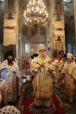 В день престольного праздника обители по окончании богослужения были совершены крестный ход и освящение плодов нового урожая.