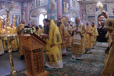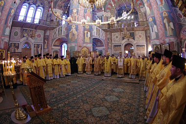 «Сердечно благодарю вас за соборную молитву в памятный для меня день. Благодарю владыку Феогноста, владыку Даниила и владыку Феофилакта за то, что прибыли в Дивеево. Некогда мы вместе несли послушание в Троице-Сергиевой Лавре. Счастлив человек, который мог пожить и потрудиться в обители преподобного Сергия. Жизнь в этом монастыре — живой пример монашества. Где бы я ни был, моя душа остается там, в Троицком соборе у раки с мощами преподобного Сергия. У епископа много дел по восстановлению обителей, строительству храмов. Но не в этом его задача. Главное — возрождение молитвенного делания в святых обителях и подготовка священнослужителей, которые трудились бы с усердием, чтобы вера Христова не оскудевала в сердцах людей, а укреплялась. Будем нести наше служение и впредь, и молить Господа Бога о помощи, чтобы Он наши немощи уврачевал и укрепил Своей Божественной благодатью».