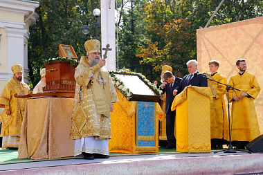 При виде такого множества людей, пришедших молитвенно почтить память великого сына Отечества, радуется сердце. Здесь собрались и военнослужащие, чьим Небесным покровителем является святой князь-воин, и молодежь, для которой он стал примером верности нравственным идеалам, и государственные мужи, берущие за основу своего служения бескорыстную заботу великого князя о благе Отечества. Святой Александр Невский сегодня собрал всех в единстве веры и любви к богохранимой стране нашей».