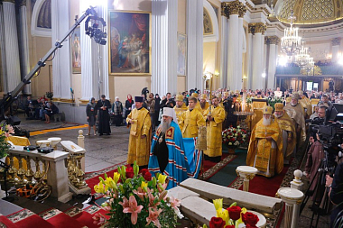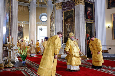 В этот день Божественную литургию в Свято-Троицком соборе Александро-Невской лавры возглавил управлящий делами Московской Патриархии митрополит Санкт-Петербургский и Ладожский Варсонофий.