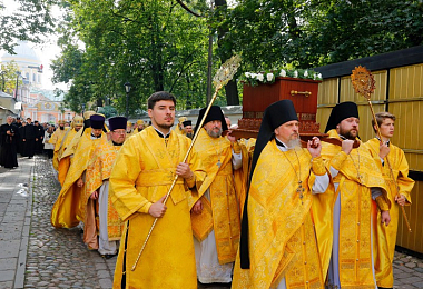 К 12.00 крестоходцы подошли к площади, где встретились с малым крестным ходом, который прошел из Свято-Троицкого собора Лавры с мощами святого Александра Невского.