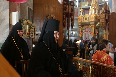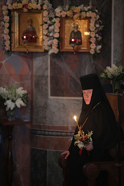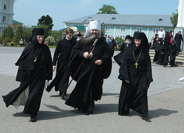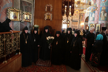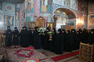Поздравить игумению Сергию с юбилеем и принять участие в совместной молитве прибыли настоятельницы монастырей Нижегородской митрополии и представитель Синодального отдела по монастырям и монашеству ‒ настоятельница Покровского Хотькова ставропигиального женского монастыря игумения Олимпиада (Баранова).