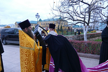 Святыню встретили викарий Нижегородской епархии епископ Балахнинский Илия, настоятельница Серафимо-Дивеевского монастыря игумения Сергия (Конкова), насельницы обители и многочисленные богомольцы.