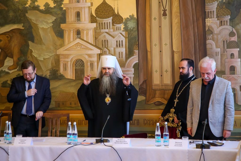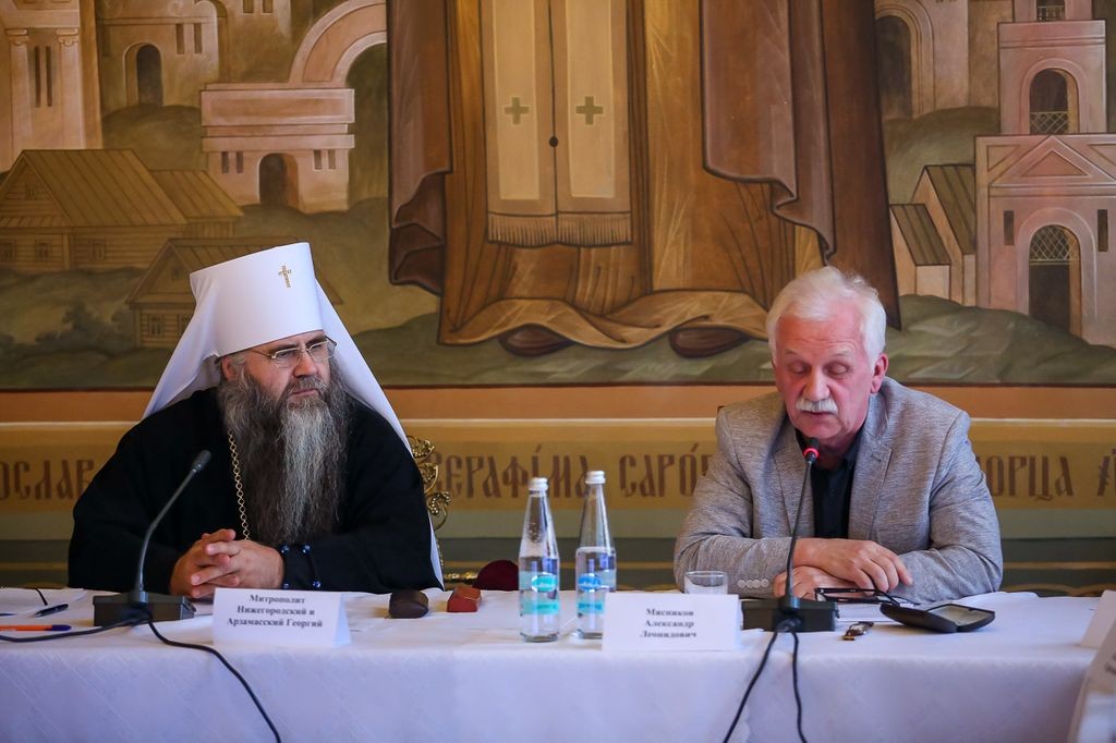 Встречу открыл митрополит Нижегородский и Арзамасский Георгий. В своем вступительном слове Его Высокопреосвященство рассказал, как понимается в Церкви категория святости, с чем связана проблема канонизации политических деятелей и почему критерии, положенные в основу их прославления, непонятны для секулярного сознания.