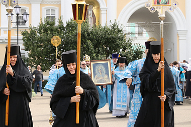 В завершение глава Нижегородской митрополии в своем святительском слове сказал, что «мы имеем в лице Богородицы на небе Ходатаицу за весь род человеческий, Покров над всей землей Русской, особое попечение о монашестве и епископах, которые на своей груди носят панагию с изображением Пресвятой Богородицы».