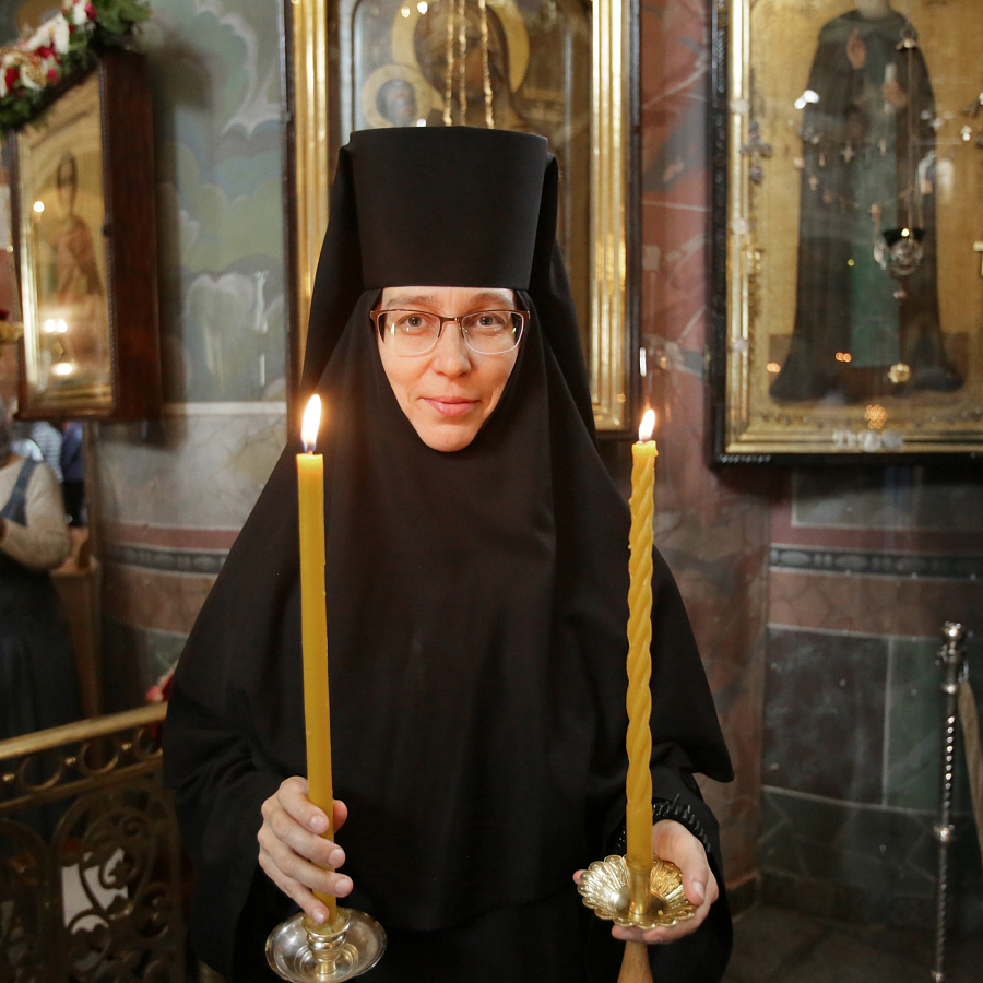 По окончании богослужения настоятельница монастыря игумения Сергия (Конкова) поблагодарила архиереев от всей монастырской семьи за украшение праздника своим участием в нем и поздравила митрополита Георгия с наступающим 55-летием.