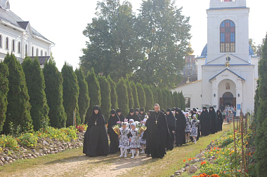Новый учебный год начался с молебна в Успенском храме обители. По окончании молебна девочки в сопровождении настоятельницы монастыря игумении Еротииды (Гажу), священника и сестер прошли на торжественную линейку в Варваринскую трапезную. Линейка началась с пения Гимна России.