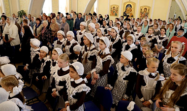 Детям желаю быть внимательными и старательными. Мы от вас ждем, что вы будете нашей достойной сменой, будете нам помощниками, защитниками Родины, верными чадами Православной Церкви, что вы будете любить храм, любить ближних. Мы надеемся, что, где бы вы ни были после школы, вы будете распространять повсюду эту красоту, необычную атмосферу, в которой здесь находитесь. Еще раз всех вас поздравляю и желаю Божией помощи!»